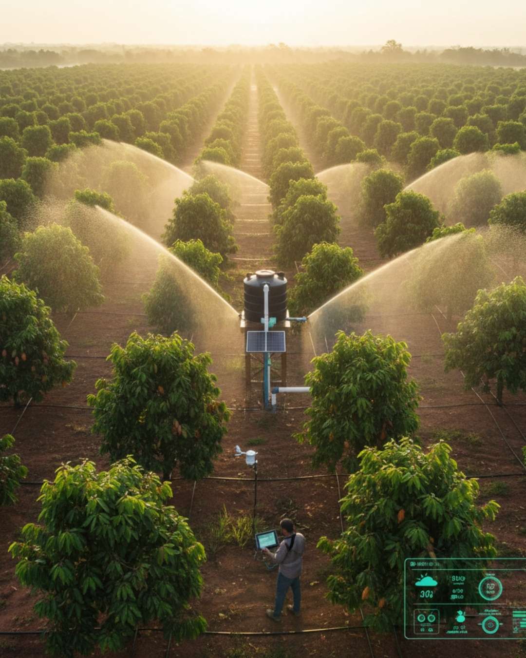 El proyecto propone optimizar el riego en cacao (Theobroma cacao L.) mediante un sistema de control inteligente (sensores de humedad del suelo/planta, clima y algoritmos de decisión) para ajustar en tiempo real el suministro hídrico.