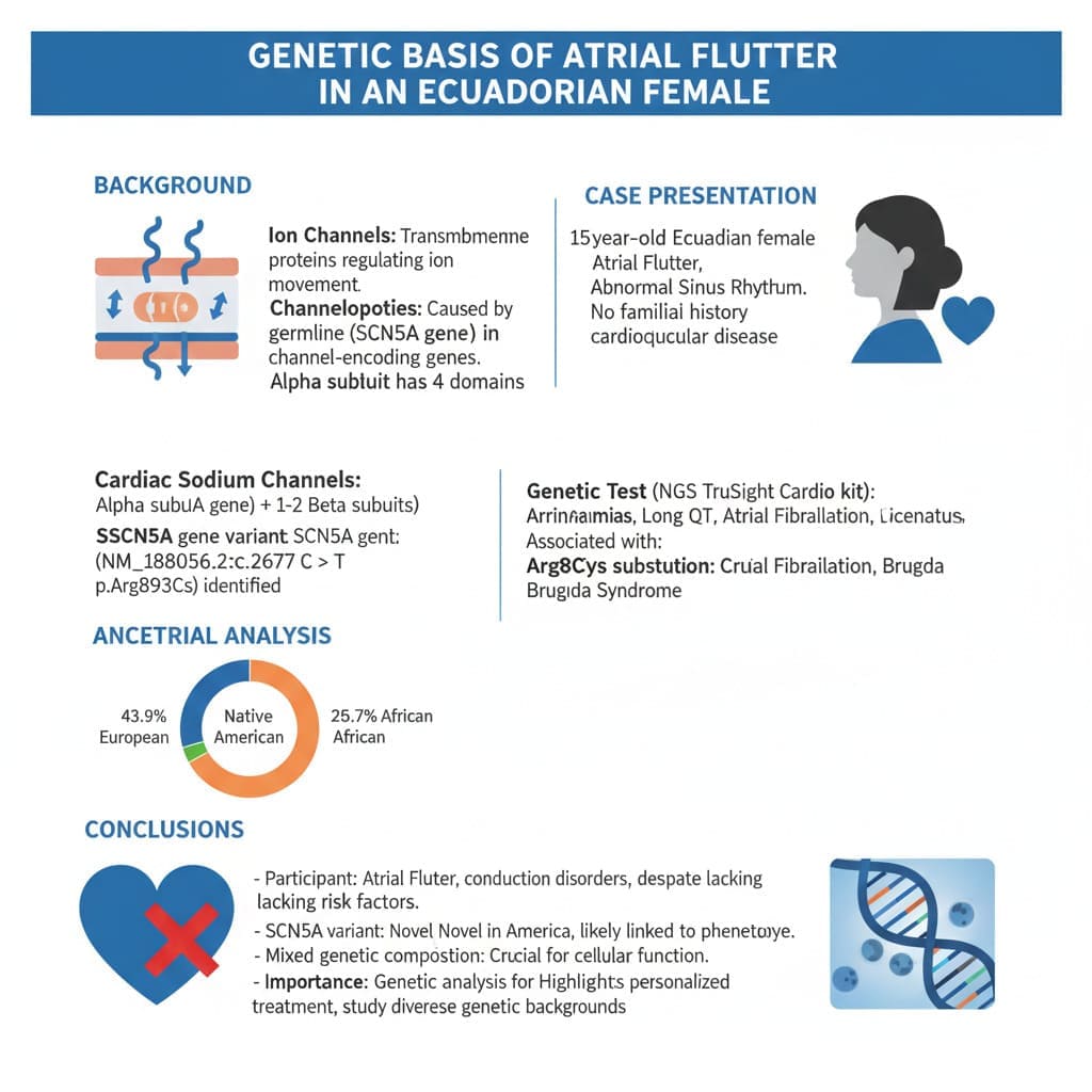 The subject’s mixed genetic composition highlights potential genetic contributors to atrial flutter, emphasizing the need for comprehensive genetic studies, particularly in mixed populations like Ecuadorians.