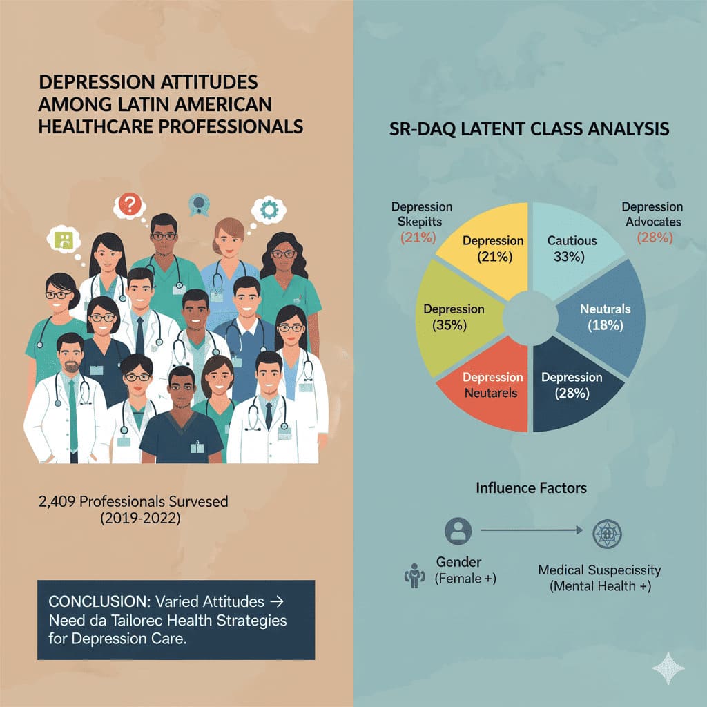 Conclusion: The study reveals varied attitudes towards depression among Latin American healthcare professionals, suggesting the need for tailored public health strategies to enhance effective depression care and management.