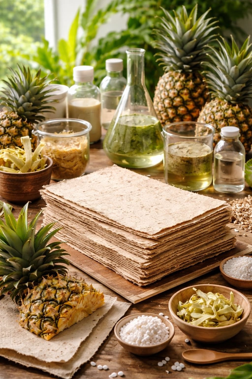 Pineapple-crown papers with partial NaOH substitution: Performance, costs, and life-cycle footprints