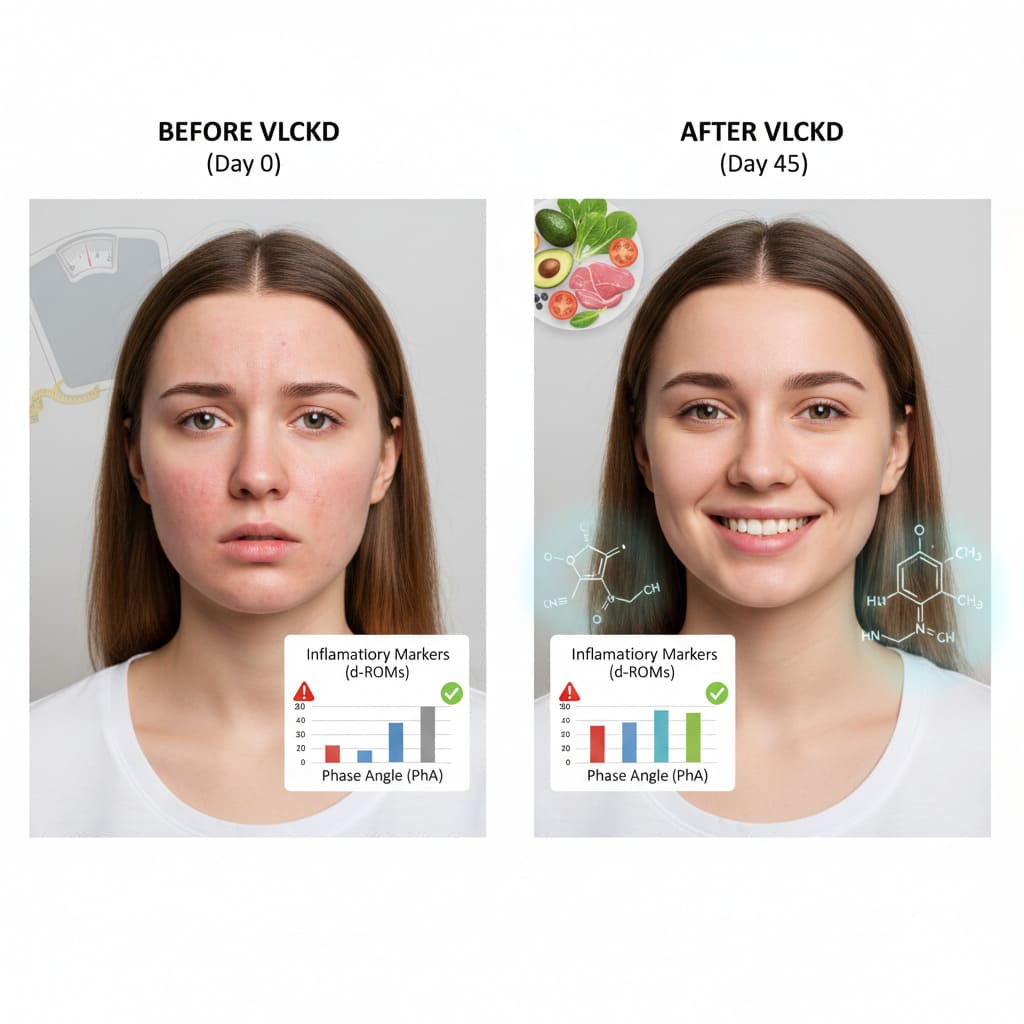 The 45-day active phase of VLCKD demonstrated notable improvements in acne severity, and these improvements seemed to be attributable to the known antioxidant and anti-inflammatory effects of VLCKD.