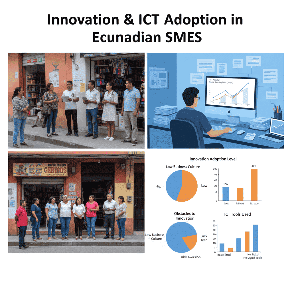 The current disruptive scenario in the Ecuadorian economy encourages SMEs to generate innovations in their management models that allow them to obtain competitive advantages. Through this study, it is intended to know, based on a systemic analysis, the degree of adoption of innovation and ICT tools in SMEs in the city of Santo Domingo (Ecuador).