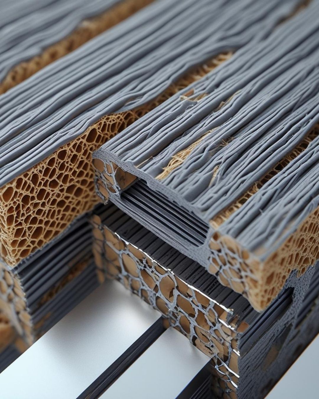 The growing demand for sustainable materials has driven significant interest in composites reinforced with organic fibers, due to their mechanical performance, availability, and reduced environmental impact. This study investigates the mechanical behavior of two composite configurations: a cross-woven fabric and a sandwich-type panel, both made from totora (Schoenoplectus californicus) and low-density polyethylene–aluminum (LDPE–Al). Our experimental results show that the cross-woven variant achieved higher impact resistance (2.51 J), tensile strength (5.82 MPa), and greater deformation capacity (6.76%), making it more suitable for applications requiring energy absorption and flexibility, such as interior cladding and modular furniture. In contrast, the sandwich configuration exhibited superior stiffness (910 MPa), favoring structural panels and low-load roofing uses. This research distinguishes itself by integrating biodegradable totora fibers with recycled LDPE–Al to fabricate sustainable construction components, advancing circular economy principles while addressing limitations in previous composite formulations through improved mechanical balance and application-specific performance.