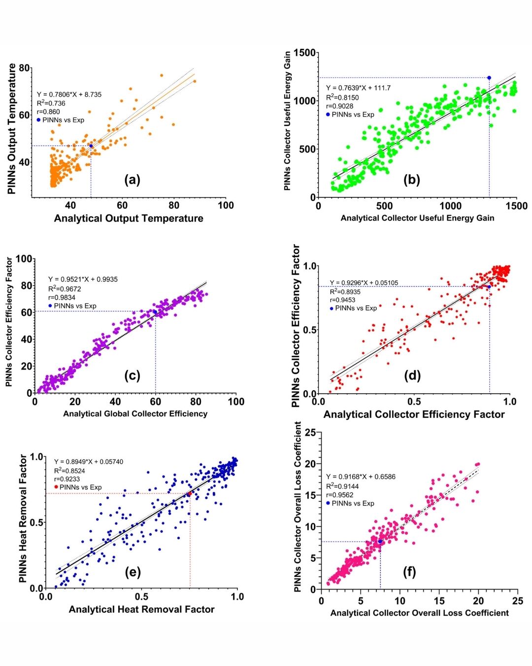 Although the PINNs model showed minor discrepancies in certain parameters, it outperformed traditional methods in capturing the complex, nonlinear behavior of the data set, especially in predicting outlet fluid temperature (55.05 °C vs. 67.22 °C).